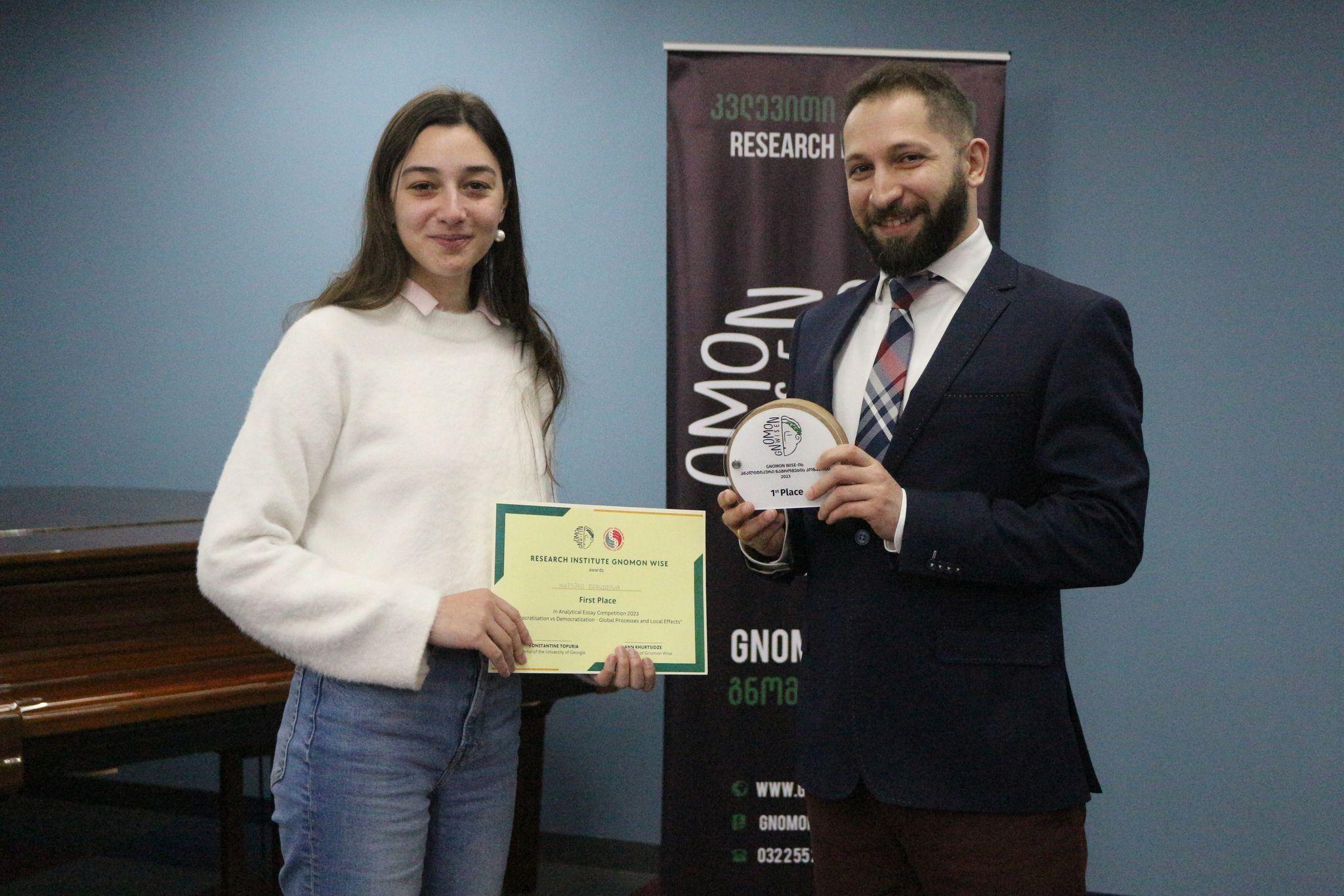 I ადგილი - ნუციკო ძანძავა - ნაშრომის თემა: "როგორ სწავლობენ ავტოკრატები ერთმანეთისგან? - უნგრეთისა და რუსეთის მაგალითი"